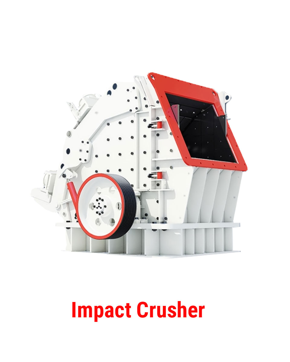 • Impact Crushers: With their high crushing ratio and superior particle shape control, our impact crushers are perfect for secondary and tertiary crushing applications, producing uniform-sized aggregates for use in concrete, asphalt, and other construction materials.