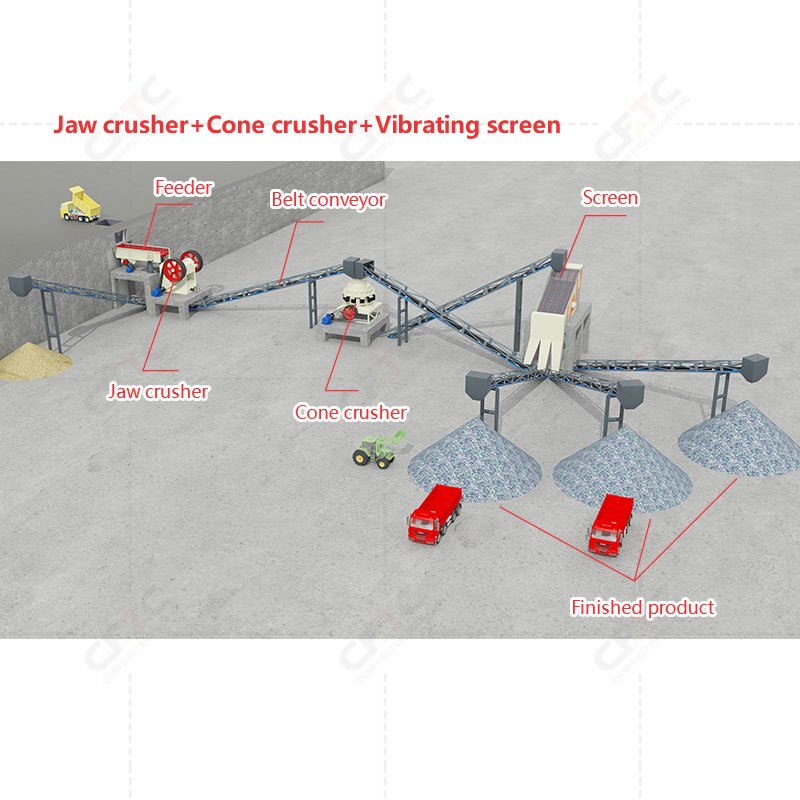• Cone Crushers: Designed for fine crushing and shaping, our cone crushers are ideal for producing high-quality aggregates with excellent particle shape and size distribution.